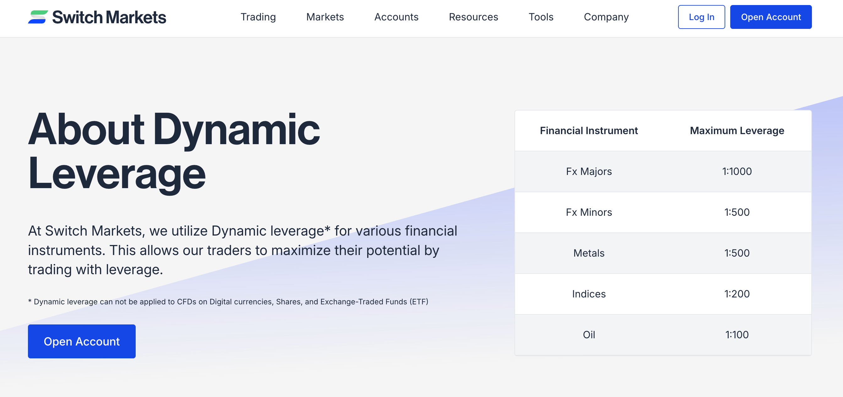 Dynamic leverage is a powerful feature that adapts to your trading needs, offering flexibility and control. Switch Markets integrates this system to enhance your trading experience.
